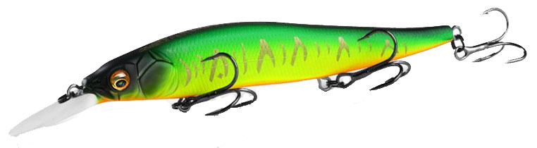 Тип воблера — минноу, длина - 110 мм, вес - 14 грамм, заглубление 1,2 - 1.8 метра, тип плавучести — нейтральная(суспендер). Лучший способ анимации — твичинг. Воблер достаточно упорист за счет своей увеличенной лопатки, поэтому спиннинг лучше выбирать с некоторым запасом по верхнему тесту. Можно так же использовать эту приманку для троллинга по глубинам от двух до трех метров.