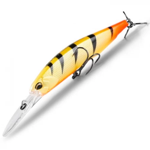- имеющиеся в системе огрузки воблера подвижные шары при забросе смещаются в хвостовую часть, увеличивая дальность заброса; с началом проводки они фиксируются в рабочем положении и вместе с дополнительными шарами меньшего диаметра, зафиксированными в различных частях воблера, обеспечивают прекрасный баланс. При движении приманки все эти разноразмерные шары могут вибрировать, что создаёт многочастотный звук, который дополнительно привлекает внимание хищника.