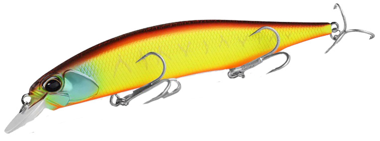 Длина приманки(без учета лопатки) - 120 мм. вес - 18 грамм, тип плавучести — суспендер. Рабочая глубина от 1 до 1,8 метра. Воблер оснащен системой дальнего заброса и шумовой камерой. Самый эффективный способ проводки — твичинг. Отлично работает по средней и крупной щуке, особенно в осенний период.