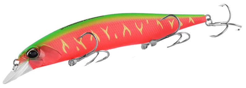 Длина приманки(без учета лопатки) - 120 мм. вес - 18 грамм, тип плавучести — суспендер. Рабочая глубина от 1 до 1,8 метра. Воблер оснащен системой дальнего заброса и шумовой камерой. Самый эффективный способ проводки — твичинг. Отлично работает по средней и крупной щуке, особенно в осенний период.