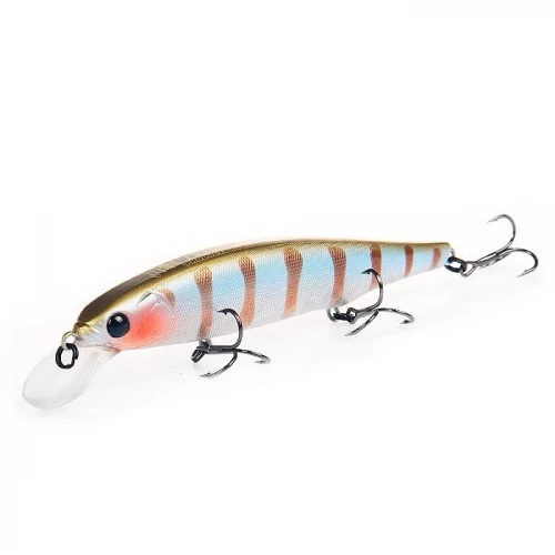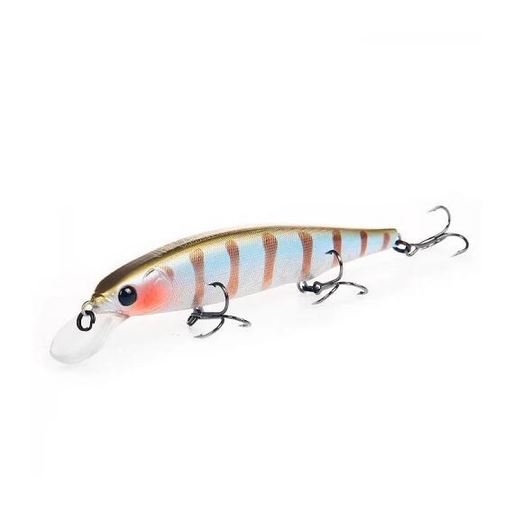 Воблеры типа суспендер постепенно отодвигают на второй план другие типы приманок, делая их менее востребованными, но Беркинг Рипрайзер 112F это не грозит. Эта приманка, по праву признанная незаменимым щучьим воблером, относится к классу minnow и имеет, как и другие его представители, классическую вытянутую форму тела. Длина Рипрайзера составляет 112 мм, вес — 15 г, заглубление до полутора метров. Тело приманки оснащено тремя прочными тройными крючками.