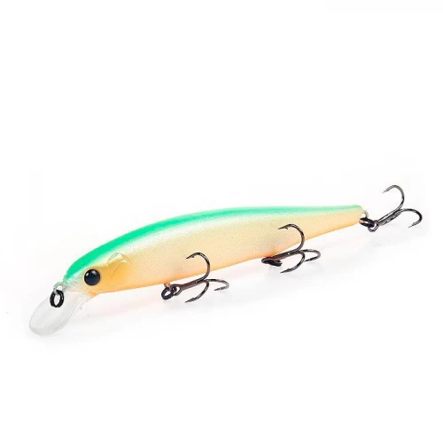 Воблеры типа суспендер постепенно отодвигают на второй план другие типы приманок, делая их менее востребованными, но Беркинг Рипрайзер 112F это не грозит. Эта приманка, по праву признанная незаменимым щучьим воблером, относится к классу minnow и имеет, как и другие его представители, классическую вытянутую форму тела. Длина Рипрайзера составляет 112 мм, вес — 15 г, заглубление до полутора метров. Тело приманки оснащено тремя прочными тройными крючками.