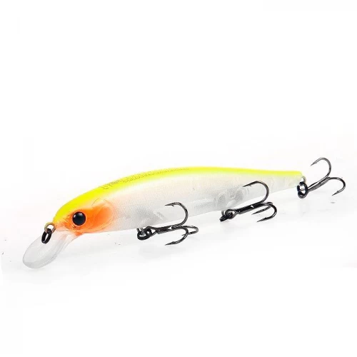 Воблеры типа суспендер постепенно отодвигают на второй план другие типы приманок, делая их менее востребованными, но Беркинг Рипрайзер 112F это не грозит. Эта приманка, по праву признанная незаменимым щучьим воблером, относится к классу minnow и имеет, как и другие его представители, классическую вытянутую форму тела. Длина Рипрайзера составляет 112 мм, вес — 15 г, заглубление до полутора метров. Тело приманки оснащено тремя прочными тройными крючками.
