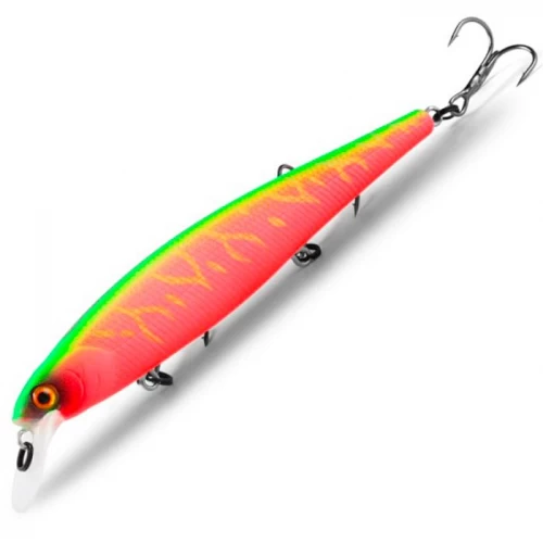 Беркинг Слендер Поинтер 112MR весьма тщательно детализирован, удлиненный корпус покрыт сеточной имитацией чешуек над боковой линией и насечками с наклоном под ней. Головная часть выделена рельефными жаберными крышками, снабжена соразмерными глазами с крупными зрачками. В палитре расцветок большое разнообразие вариантов разно тональных оформлений. Наряду с традиционными кислотниками и натуралами присутствуют модификации с голографией и контрастными сочетаниями. Покрытие уверено держит укусы, медленно истирается и долго сохраняется презентабельный вид.