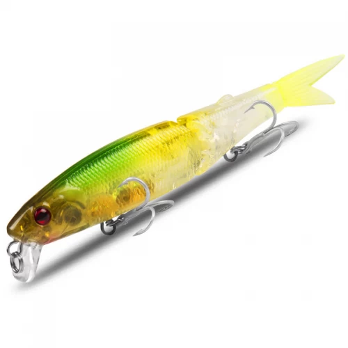 Беркинг Тини Магаллон состоит из двух частей и предназначен для точечного облова перспективных точек в окнах травы и вдоль тростника. Особенно эффективно приманка работает на несильных мягких рывочках с отдачей шнура и паузами в несколько секунд. Реалистичная игра двусоставного тела провоцирует на поклевку даже неактивного хищника.
