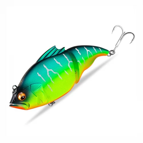 Беркинг Ваталион F115 - это уникальный составной воблер класса свимбейт. Внешний вид, размер и характеристики приманки точно указывают на ее предназначение. Vatalion F115, имеющий длину 11.5 сантиметров и массу 41 грамм, заточен в первую очередь под ловлю трофейной щуки.