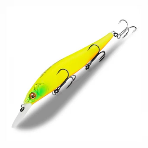 Беркинг Вижн Онетен Плюс 1 имеет рабочую глубину на 1 метр больше чем Беркинг Вижн 110. Внутренняя огрузка аналогична 110й модели. Увеличение рабочей глубины обеспечивается удлинённой лопастью. Она довольно тонкая, поэтому меньше влияет на поперечные колебания воблера. Расположена лопасть под небольшим углом к продольной оси, благодаря чему лобовое сопротивление при проводке не столь велико, как у тех же «дипов» (deep), и вы можете использовать ту же снасть, с которой ловите на классическую версию этого воблера. Bearking Vision Oneten Plus 1 отзывается живой игрой даже на самые лёгкие потяжки, поэтому с ним допустима любая твичинговая техника. Но самым главным отличием от всех глубоководных воблеров является умение Vision ONETEN +1 метаться из стороны в сторону, тогда как обычные «глубоко водники» ведут себя довольно скованно.