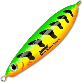 Rattlin Minnow Spoon от финской фирмы Rapala, это модернизированный Minnow Spoon, в который добавлена шумовая камера и сделаны более плавные обводы для больших зигзагов. Известный всем рыбакам вездеход (анти зацеп) творит чудеса в заросших водоемах и торфяниках, где ловля на другие приманки приводит лишь к боли их потерь. Minnow Spoon любит неторопливую проводку, при ней приманка идеально описывает зигзаги и не сбивает игру, которая заложена в её конструкции и форме тела. Также можно делать небольшие паузы, на которых блесна Minnow Spoon планируя, погружается на дно, поднимая облачко мути, и в это время делаем короткую подтяжку (3-5 см.), и снова продолжаем равномерную проводку. Неплохо облавливать ею окна в растительности на сваливание с кувшинок и погружении вдоль стеблей, как раненная рыбка.