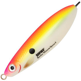 Rattlin Minnow Spoon от финской фирмы Rapala, это модернизированный Minnow Spoon, в который добавлена шумовая камера и сделаны более плавные обводы для больших зигзагов. Известный всем рыбакам вездеход (анти зацеп) творит чудеса в заросших водоемах и торфяниках, где ловля на другие приманки приводит лишь к боли их потерь. Minnow Spoon любит неторопливую проводку, при ней приманка идеально описывает зигзаги и не сбивает игру, которая заложена в её конструкции и форме тела. Также можно делать небольшие паузы, на которых блесна Minnow Spoon планируя, погружается на дно, поднимая облачко мути, и в это время делаем короткую подтяжку (3-5 см.), и снова продолжаем равномерную проводку. Неплохо облавливать ею окна в растительности на сваливание с кувшинок и погружении вдоль стеблей, как раненная рыбка.