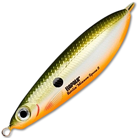 Rattlin Minnow Spoon от финской фирмы Rapala, это модернизированный Minnow Spoon, в который добавлена шумовая камера и сделаны более плавные обводы для больших зигзагов. Известный всем рыбакам вездеход (анти зацеп) творит чудеса в заросших водоемах и торфяниках, где ловля на другие приманки приводит лишь к боли их потерь. Minnow Spoon любит неторопливую проводку, при ней приманка идеально описывает зигзаги и не сбивает игру, которая заложена в её конструкции и форме тела. Также можно делать небольшие паузы, на которых блесна Minnow Spoon планируя, погружается на дно, поднимая облачко мути, и в это время делаем короткую подтяжку (3-5 см.), и снова продолжаем равномерную проводку. Неплохо облавливать ею окна в растительности на сваливание с кувшинок и погружении вдоль стеблей, как раненная рыбка.