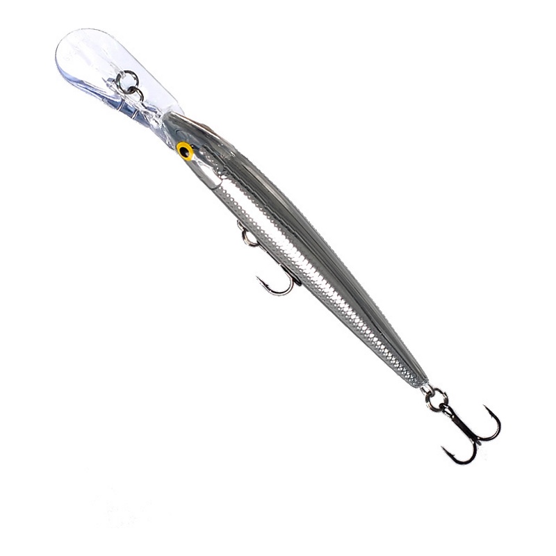 Воблер Down Deep Husky Jerk имеет нейтральную плавучесть, глубоко погружается и эффективен при ловле щуки, сома и судка. Эта приманка с великолепной возможностью заглубления одинаково годится для ловли спиннингом и для троллинга. Обладая свойствами суспендинга, Husky Jerk при остановке проводки не тонет и не поднимается к поверхности. Его игра отличается исключительной динамикой, и обладает непреодолимыми искушениями для таких хищников, как судаки щука. Ловя этой приманкой нашим основным козырем всегда будет заманивающий эффект в виде громкого, ритмичного шума, создаваемого звуковыми камерами. Длинная хвостовая часть воблера обеспечивает глубокое погружение, а тело с натуралистичной или кислотной окраской на удивление напоминает настоящую рыбку. Эффективная техника ловли заключается в следующем, сразу после заброса динамичными движениями необходимо смотать леску и опустить воблер на нужную глубину, если вы ловите спиннингом, то эффективной будет глубина 2-2.5 метра. Затем сделать небольшую паузу 2-3 секунды, резкий рывок не более 1 метра. Затем опять короткая пауза и опять резкая подмотка лески. Повторять эти действия каждый заброс, контролируя то, чтобы леска была натянута в момент поклевки. Рыба будет чаще всего клевать в момент подмотки лески или тогда, когда резко начинаете движение приманки.