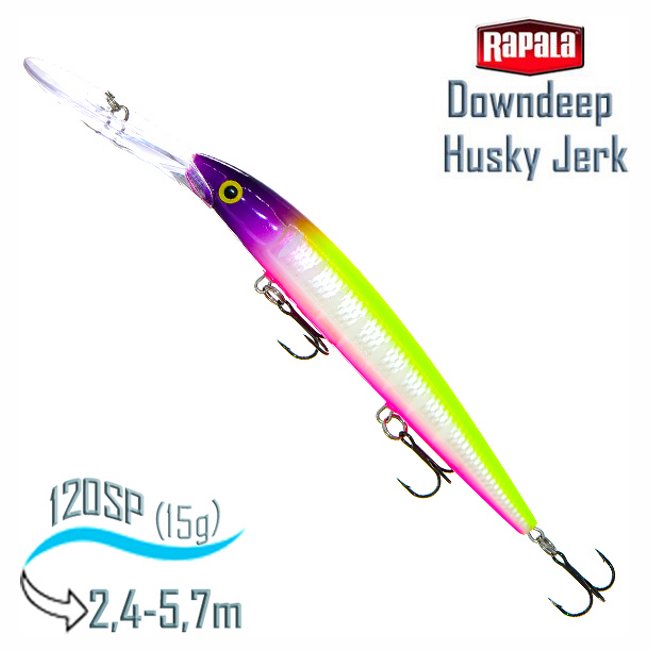 Downdeep Husky Jerk, это приманка с великолепной возможностью заглубления одинаково годится для ловли спиннингом и для троллинга. Обладая свойствами суспендинга, Husky Jerk при остановке проводки не тонет и не поднимается к поверхности. Его игра отличается исключительной динамикой, и обладает непреодолимыми искушениями для таких хищников, как судаки щука. Ловя этой приманкой нашим основным козырем всегда будет заманивающий эффект в виде громкого, ритмичного шума, создаваемого звуковыми камерами. Длинная хвостовая часть воблера обеспечивает глубокое погружение, а прозрачное тело с натуралистичной окраской на удивление напоминает настоящую рыбку.