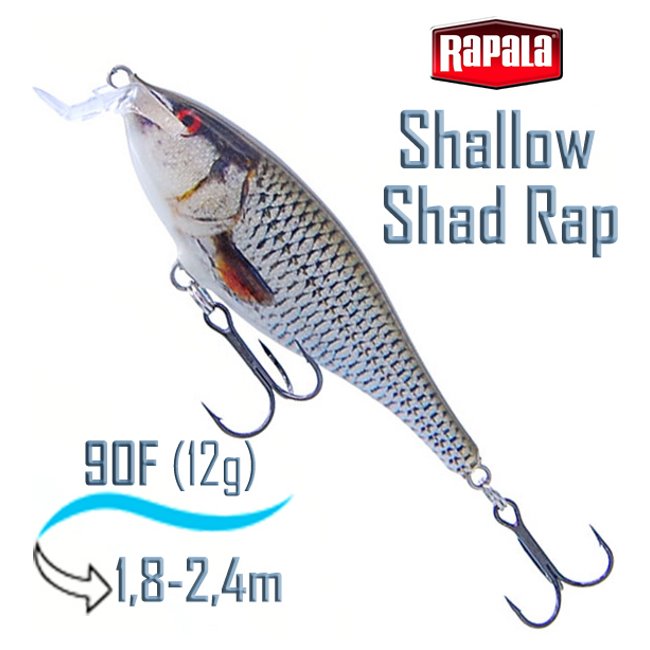 Shallow Shad Rap представляет собой мелководную версию воблера Shad Rap. Он изготавливается из бальсы и не имеет шумовой камеры. Рабочий горизонт воблера составляет от 1 до 2,5 метров. Лопатка, которой оснащена приманка, имеет форму, изогнутую особым образом. Такая форма лопатки задаёт характер игры приманки при её движении в воде. На равномерной проводке приманка активно играет всем корпусом, а на твичевой проводке имеет агрессивную игру. Воблеры Shallow Shad Rap от финского бренда Rapala давно завоевали популярность у множества рыболовов. Приманки отличаются удивительной уловистостью и универсальность - они подходят для охоты за, фактически, любым хищником. С помощью этого шеда можно ловить крупных окуней и щук, жереха, а также судака. Игра приманки в воде имитирует поведение настоящей живой рыбки. Благодаря своей активной, привлекательной игре, приманка не останется без внимания хищника. Интенсивные колебания, создаваемые воблером во время проводки, привлекут рыбу с отдаленных дистанций. Shallow Shad Rap одинаково хорошо работает как в стоячей воде, так и стабильно играет на водоемах с течением. Воблер может успешно применяться в кастинговой ловле, а также для троллинга. Эффективность данного воблера возрастает в осенний период, когда начинается снижение температуры воды.