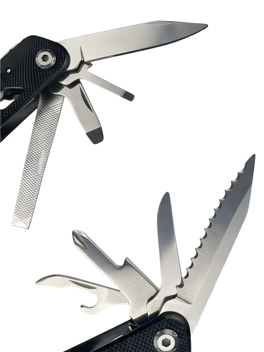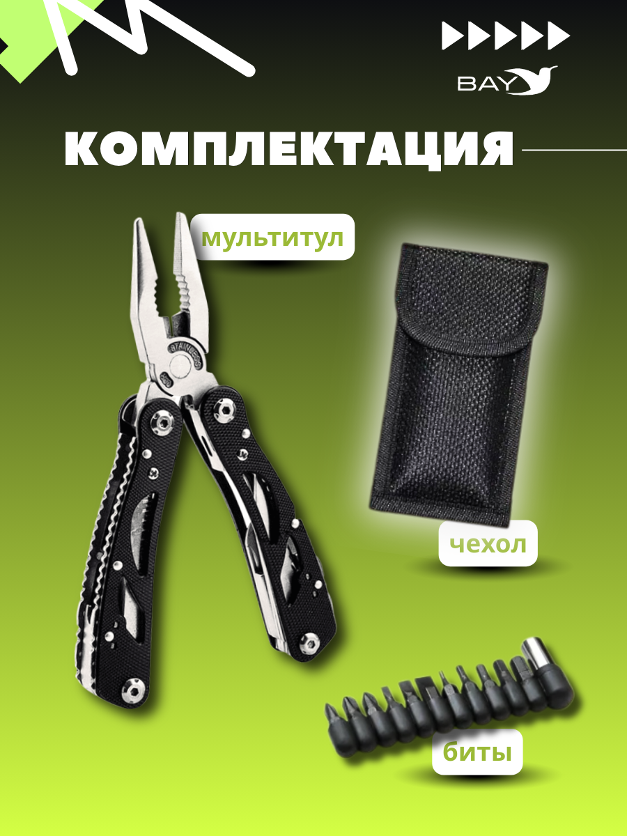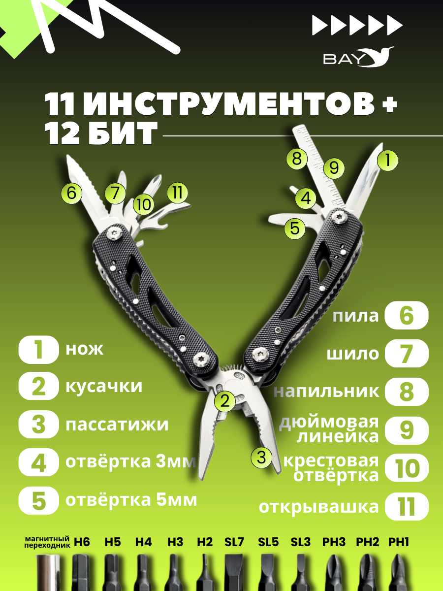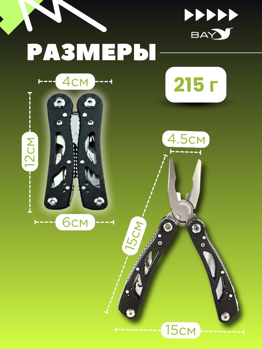 В конструкции мультитула предусмотрен весь набор необходимых инструментов для путешествий, комфортных прогулок, поездок на автомобиле, велосипеде, мотоцикле, в быту и на работе. Универсальный подарок для любимых и дорогих мужчин, которые любят активный образ жизни и что-то мастерить своими руками. Это многофункциональный инструмент, изготовленный из прочной нержавеющей стали. Мультитул имеет стильный дизайн, практичен и его легко носить с собой (имеется специальное крепление).