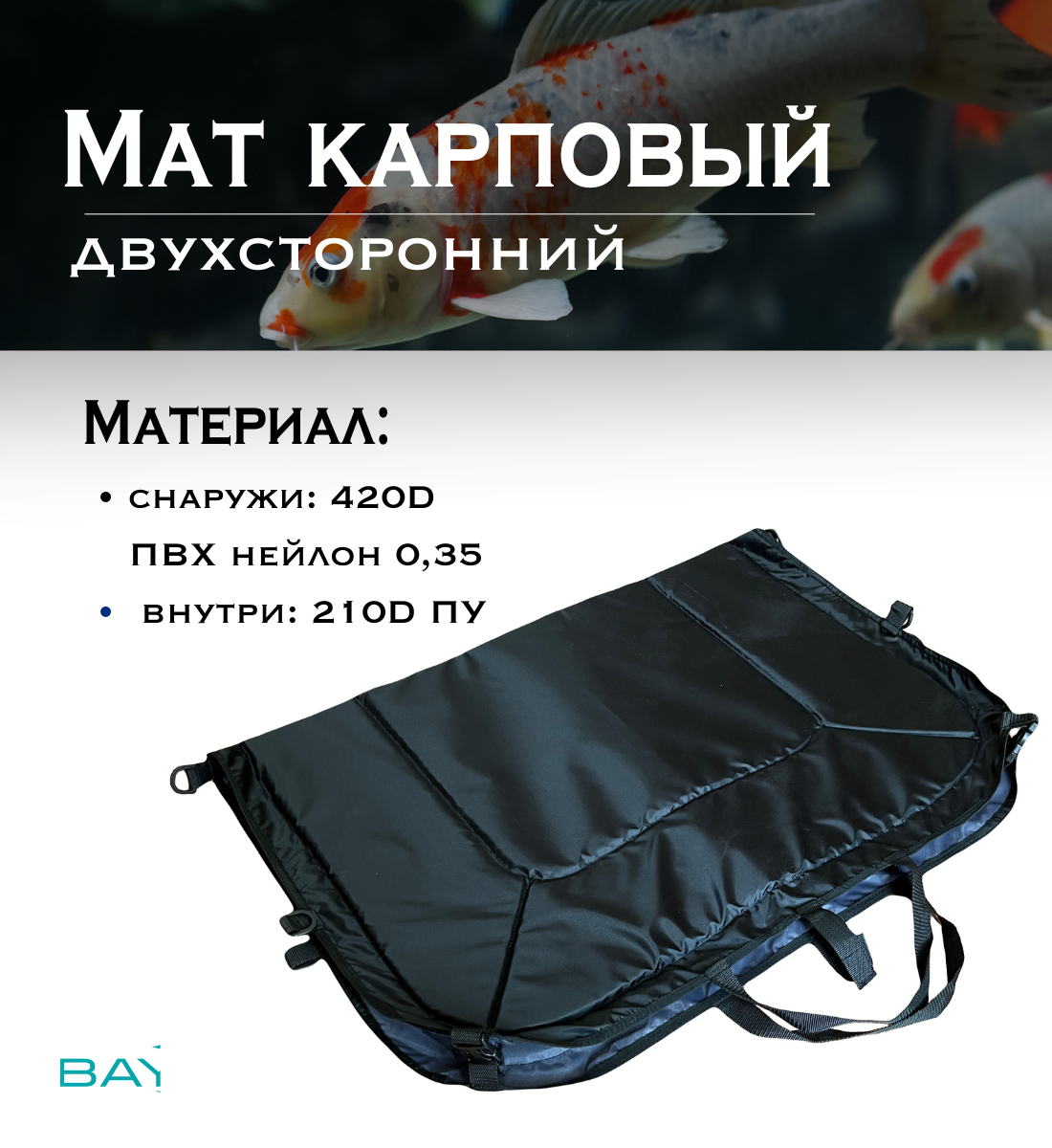 Важность карпового мата так же велика, как и удилища, ведь когда вы ловите по-настоящему крупные экземпляры , то фотографироваться с ними стоит только на корточках, приподнимая карпа над матом всего на несколько сантиметров. Если случайно упустите его с высоту человеческого роста, рыба может просто умереть, да и находясь просто на земле может биться о нее, в результате чего получит сильные повреждения. Когда карп уже в подсаке, то нужно аккуратно перенести его на расстеленный на земле мат, который обязательно должен быть смочен водой. Мат для карпа идеален для сталкинга, ловли с лодки и для любителей рыбачить налегке. Материал не промокаемый, не впитывает воду и запахи, легко моется!