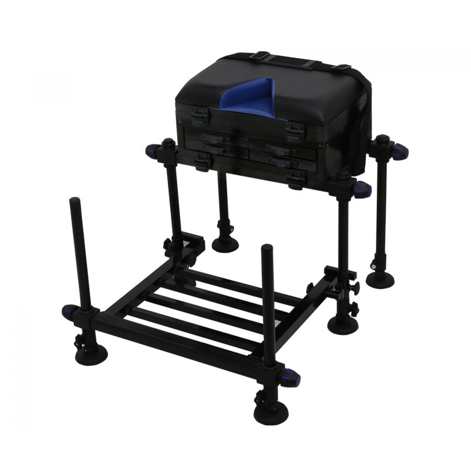 Cast Master — самая компактная и легкая платформа из всех платформ Flagman. Обладая малым весом (8,5 кг) и габаритами, платформа отличается высокой устойчивостью, добротной сварной рамой, быстро и легко складывается. В сложенном виде не занимает много места. Более того, ее можно спокойно переносить в сумке подходящих размеров, учитывая, что ее транспортировочные габариты составляют 58x48x30 см. Такая компактная платформа станет превосходным выбором для рыболовов, которые добираются до места ловли общественным транспортом. Модель Cast Master собрана на прочной алюминиевой раме, комплектуется прочной педаной откидной конструкции. Такое решение облегчает переноску полностью собранной платформы, тем более, что она снабжена широким, прочным наплечным ремнем. Комплектуется шестью ногами с большими пятками, которые не дают платформе проваливаться в грунт. Удобное сидение снабжено упором для комля. Отделение под откидным сидением достаточно вместительное, его можно использовать под различные аксессуары. Для хранения небольшого количества оснасток или полезных мелочей также предусмотрены четыре небольших выдвижных ящичка (выдвигаются фронтально).
