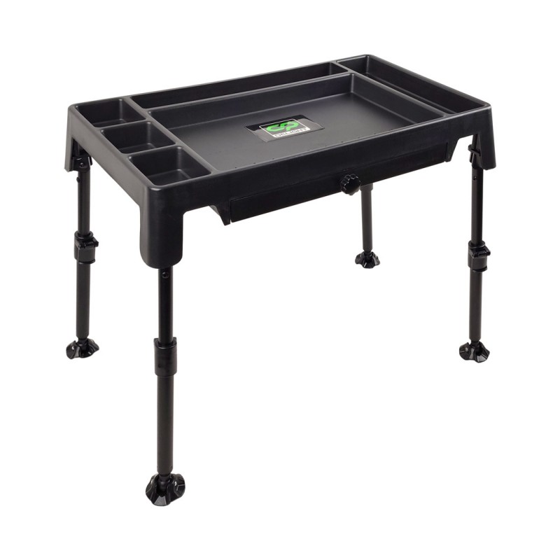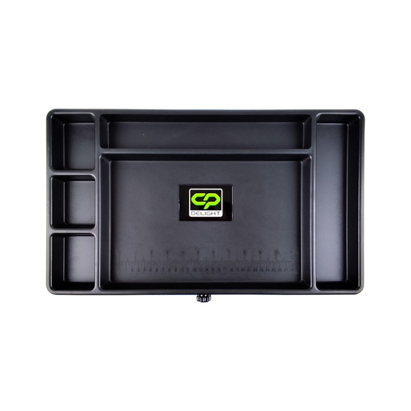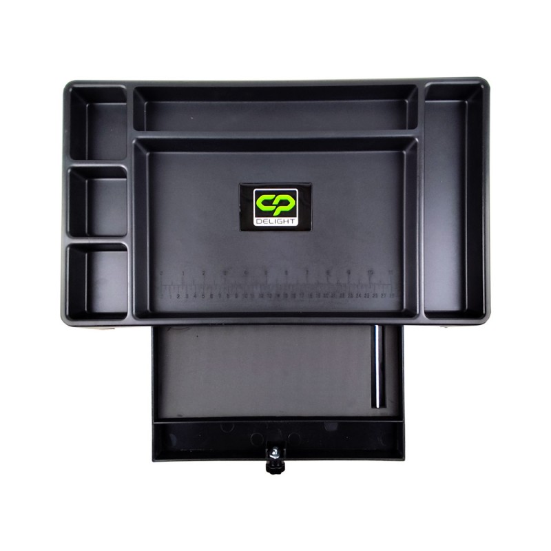 Монтажный пластиковый стол CARP PRO Delight — функциональное решение для комфортной организации рабочего места при ловле карпа. С его помощью рыболов сможет аккуратно разложить снасти, удобно вязать поводки и готовить насадки прямо на берегу. Регулируемые телескопические ножки обеспечивают устойчивость даже на неровной поверхности, а бортики делят столешницу на шесть секций, предотвращая падение мелких предметов. Конструкция выполнена из прочного пластика, весит 1,8 кг и имеет шесть отделений различного размера. Встроенная коробка-поводочница помогает хранить необходимые мелочи под рукой. Специальные опорные площадки на ножках не дают столику погружаться в мягкую почву. Высота регулируется от 32 до 45 см, что позволяет подобрать оптимальное положение для любых условий ловли.