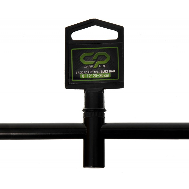 Carp Pro 3 Rod Adjustable Buzz Bar – легкий алюминиевый телескопический буз-бар на три удилища. Имеет универсальную резьбу для крепления к род-поду или стойке, а также для установки электронных сигнализаторов поклевки и держателей комля. Carp Pro 3 Rod Adjustable Buzz Bar отличается высокой надежностью, компактностью и стильным черным дизайном. Длина моделей 3 Rod Adjustable Buzz Bar регулируется при помощи двух зажимных винтов с накаткой и составляет: 8"-12" (20-30 cм) и 12"-20" (30-50 см).