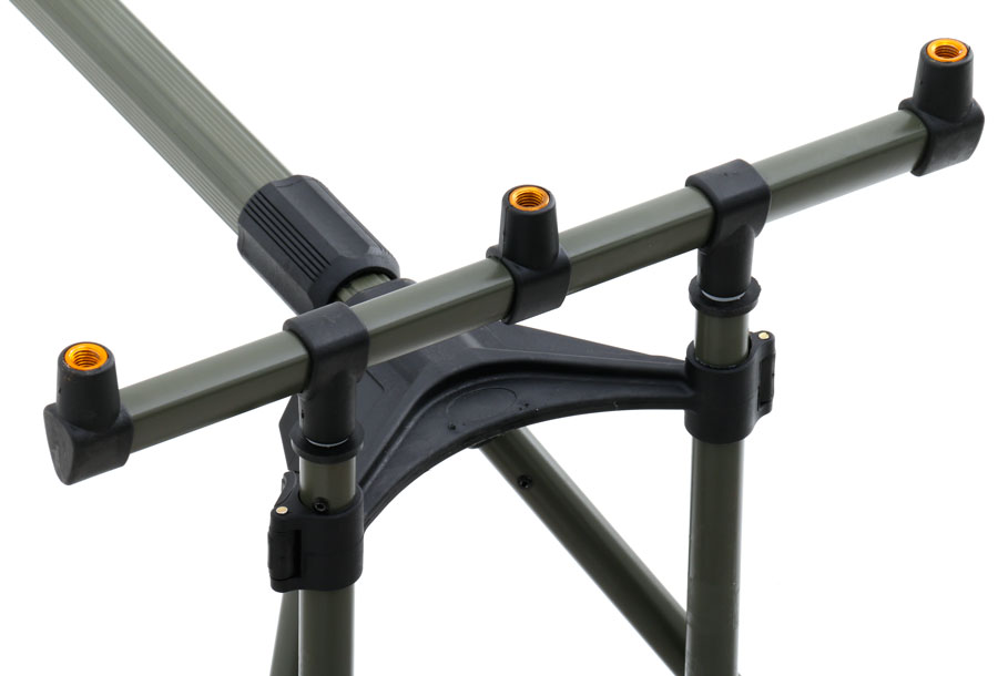 Доступный род-под на три удилища. Легкая пластиковая рама, раздвижное тело и регулируемые по высоте ноги род-пода делают его удобным в эксплуатации и перевозке. Причем, бузбар можно использовать без род-пода — его «собственные» ноги превосходно справляются с задачей установки на любом грунте. Род-под поставляется в специальном чехле для транспортировки. Превосходно подойдет как для мобильного рыболова, так и для статичного карпятника.