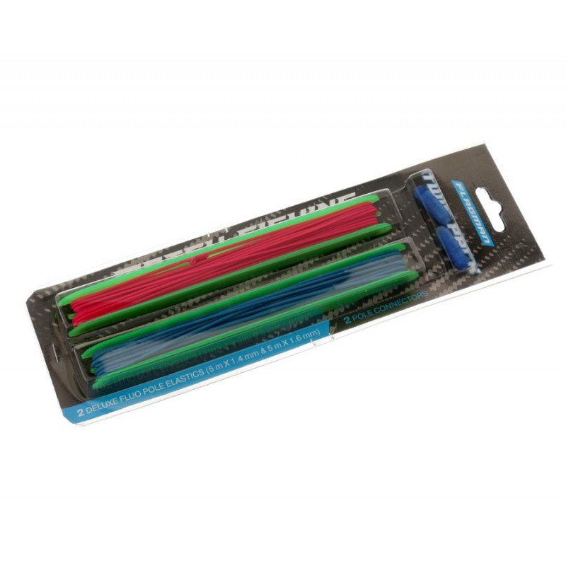 Flagman Twin Pack — набор из резины Flagman Deluxe Fluo Pole Elastic двух разных диаметров и двух коннекторов. Амортизатор из яркого флуоресцентного латекса используется для оснастки штекера. Благодаря гладкой поверхности и силиконовому покрытию амортизатор прекрасно скользит внутри кита. Коннекторы выполнены из прочного, цельнолитого пластика, благодаря чему обеспечивается надежная фиксация. Набор поставляется в блистерной упаковке. Длина амортизатора — 5 м.
