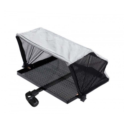 Небольшой боковой столик для платформы. Крепится к ноге. Оборудован складным тентом для защиты наживки и прикормки от солнца и дождя. Перфорированная конструкция обеспечивает хорошую вентиляцию при закрытом тенте и не дает воде скапливаться на столике. Выполнен из прочного алюминиевого сплава. Предназначен для платформ с диаметром ног 25 мм и оборудован быстросъемным креплением.