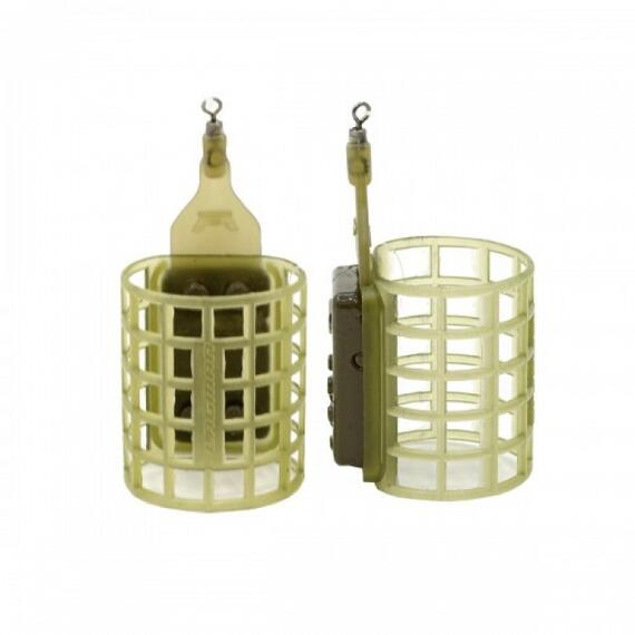 Фидерная кормушка открытого типа. Благодаря использованию пластиковой сетки, отличается средней скоростью кормоотдачи, благодаря чему может считаться универсальным решением для большинства типов водоемов, как проточных, так и стоячих. При подмотке быстро поднимается к поверхности.