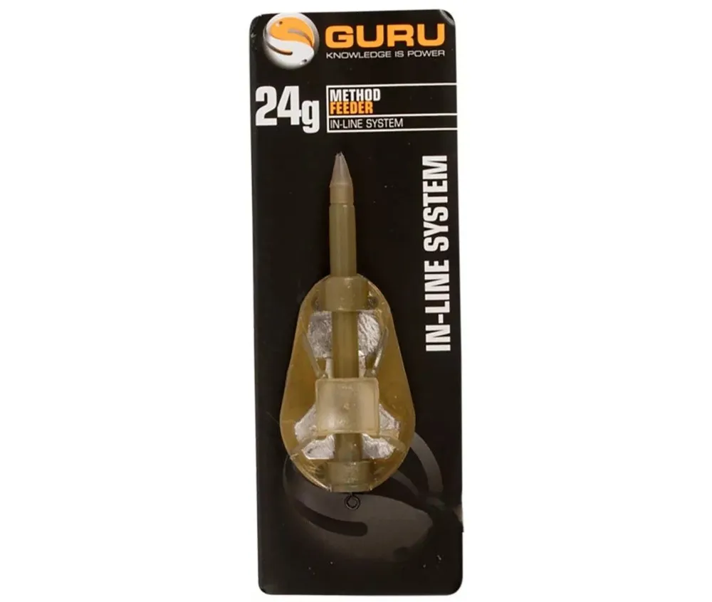 Фидерная кормушка Guru Method Feeder In-Line для методной ловли предназначенная для работы с сыпучими прикормками, наиболее эффективна в условиях стоячей воды. Благодаря конструкции Method Feeder летит словно снаряд и всегда погружается на дно грузилом вниз, такое прикормочное устройство не должно после погружения вязнуть в иле. Стоит отметить удобство этой системы. Кормушки легко монтируются на основную леску. Оснастить удилище In-line Method Feeder можно примерно за минуту, и так же быстро и легко поменять кормушку.
