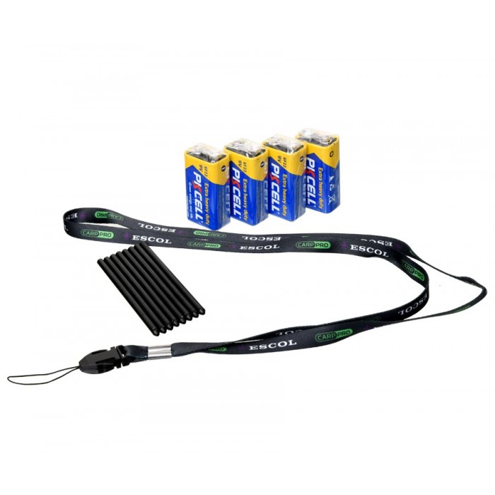 Предусмотрены функции «фонарик», «стирание кодов сигнализаторов», предупреждение о недостаточном заряде элемента питания и пр. Ресивер укомплектован брендированным шнурком.Питание сигнализатора осуществляется от 1 элемента 6F22 9 V («Крона»), а ресивера – от 2 элементов AAA (1,5 V). Частота сигнала: 433,92 МГц. Класс защиты – IP 66.Наборы электронных сигнализаторов Carp Pro Escol WRS выпускаются в двух вариантах:3+1: три сигнализатора + ресивер 4+1: четыре сигнализатора + ресивер.