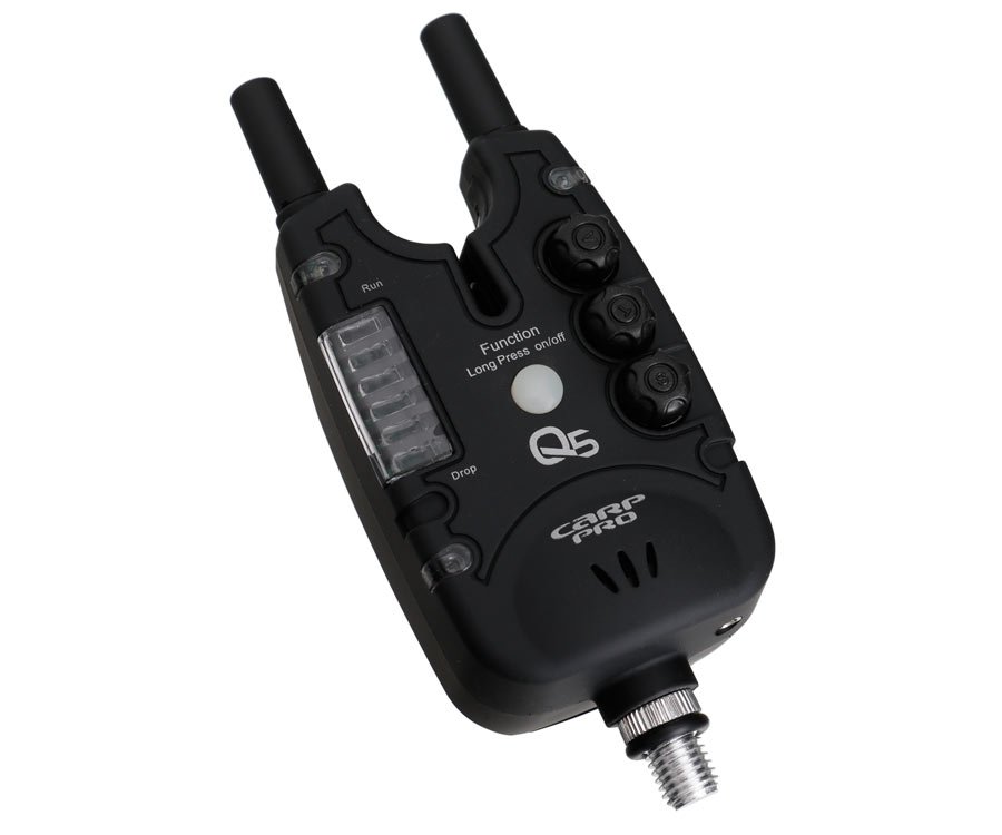 Набор высококлассных карповых сигнализаторов. Поставляются в комплектах 3+1 (красный, синий, зеленый + ресивер) и 4+1 (красный, синий, зеленый, желтый + ресивер). Прочный корпус сигнализатора выполнен из пластика, имеет влагозащиту и оборудован встроенными (и при этом съемными) Snag Ears, которые не дают удилищу упасть при порывах бокового ветра и мощных поклевках. Сигнализатор выдает разные звуки при поклевках от берега и к берегу. Звук дублируется световой индикацией: бегущая дорожка светодиодов показывает направление поклевки. На корпусе установлены три ручки, которые регулируют тон, громкость звука, а также чувствительность сигнализатора. Во время вращения ручки упомянутый световой индикатор отображает установленный уровень громкости, тона, чувствительности – в зависимости от того, какую ручку вращать. На передней панели находится датчик освещенности, который в темное время суток включает ночной режим – подсветку центральной белой кнопки. Сигнализатор оборудован «антикражем»: если его включить, то при снятии удилища с сигнализатора включается громкий звуковой сигнал, сопровождающийся миганием подсветки. Ресивер показывает не только какой сигнализатор зафиксировал поклевку, но и в каком направлении эта поклевка – от берега или к берегу. Прямо с ресивера можно дистанционно менять громкость и тон звука, а также чувствительность на каждом из сигнализаторов. Вместо звукового сигнала, громкость которого регулируется, может быть включен вибросигнал. Для питания сигнализаторов используются батарейки типа «Крона», для ресивера – элементы ААА (элементы питания в комплект не входят). Набор поставляется в надежном пластиковом кейсе.