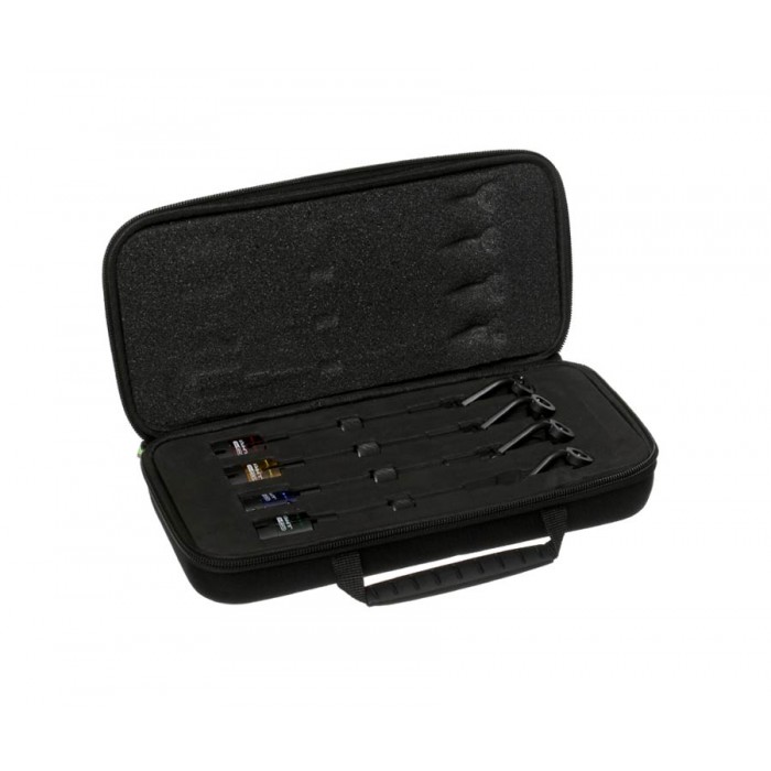 Комплект очень чувствительных механических сигнализаторов поклевки для карповой ловли, оборудованных быстросъемными коннекторами для крепления к род-поду. Жесткая шарнирная конструкция свингера исключает раскачивание ветром в горизонтальной плоскости, при этом его необыкновенная подвижность дает возможность фиксировать самые осторожные поклевки. Регулировочный грузик-утяжелитель с небольшим усилием можно двигать по укороченной штанге: чем ближе он к головке свингера, тем леска будет натягиваться сильнее, что особенно актуально в ветреную погоду. Яркая светорассеивающая головка оснащена светодиодом. Предусмотрено его подключение к электронному сигнализатору поклевки. Способ крепления свингера к леске – подпружиненные шарики, регулируемые плоской отверткой с двух сторон головки. В комплекте поставляются четыре свингера – желтого, красного, синего и зеленого цвета – упакованные в транспортировочный кейс. С возможностью подключеня к электронному сигнализатору поклёвки
