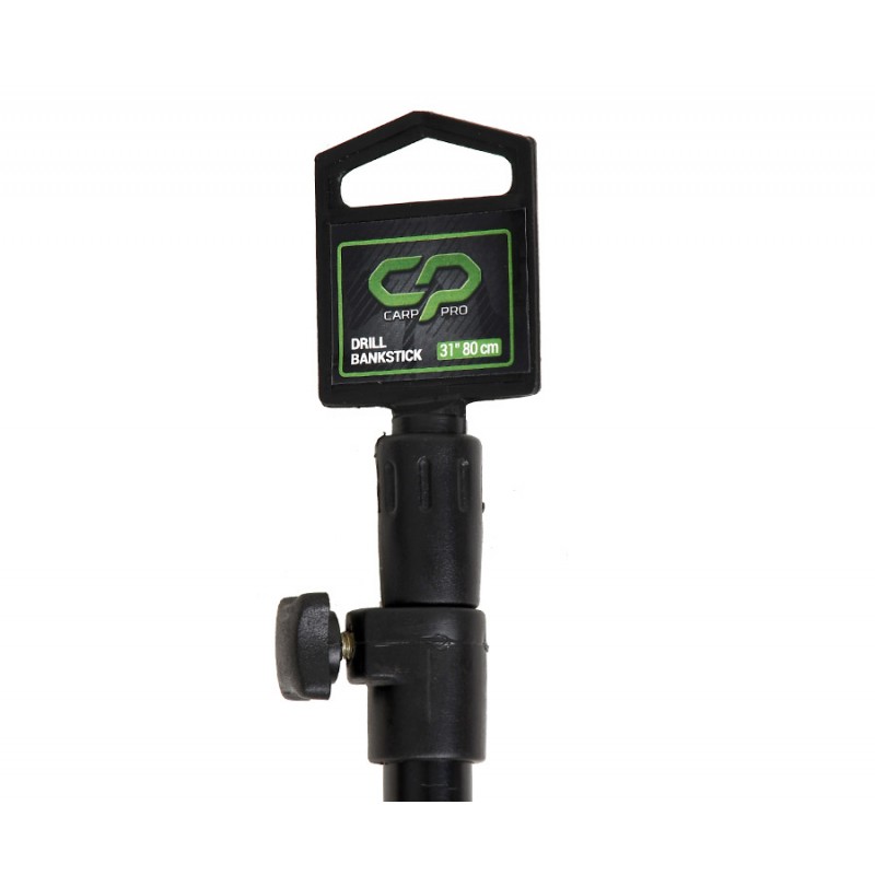Carp Pro Drill Bankstick – телескопическая стойка из алюминия, которая отличается высокой прочностью и стильным черным дизайном. Для фиксации выбранной высоты стойки ее верхняя часть (внутренняя трубка) крепится к нижней части надежным винтом, который закручивается от руки. Нижняя часть стойки оборудована винтовым наконечником, легко проникающим в твердый грунт. Резьба позволяет установить на стойку Carp Pro Drill Bankstick буз-бар, сигнализатор поклевки, держатель комля и т.п. Банкстик телескопический Carp Pro Drill Bankstick 31" имеет длину 80-140 см.