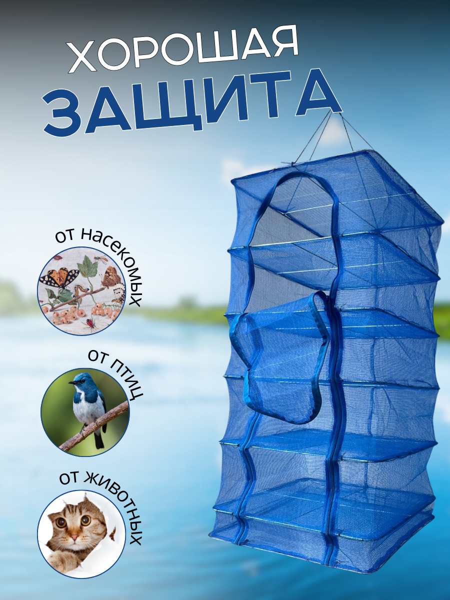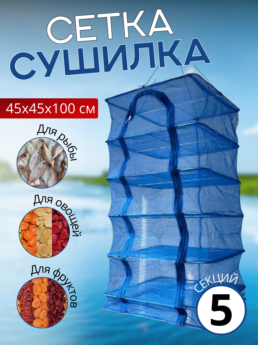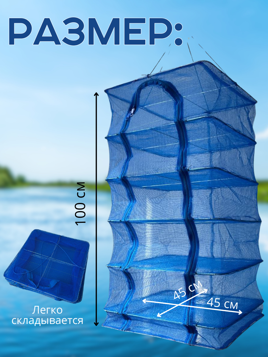 Удобная и вместительная сушилка для рыбы высотой 100 см идеально подходит для сушки рыбы и других продуктов. Изготовлена из качественной сетки, которая пропускает солнечный свет и воздух, предотвращая при этом попадание насекомых внутрь. Оборудована клапаном на молнии для удобного доступа. Подходит для использования на природе, даче, в походах, а также в домашних условиях — на балконе или в кладовке.