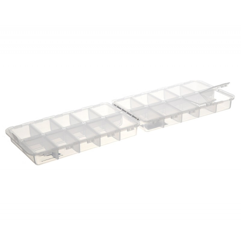 Flagman Tackle Box #2 – небольшая прозрачная рыболовная коробка из полипропилена. Устойчива к воздействию материала мягких пластиковых приманок. Предназначена для хранения и транспортировки рыболовной мелочевки: вертлюжков, мормышек, небольших блесен, миниатюрных джиговых приманок и т.д. Коробка Flagman Tackle Box #2 имеет две поверхности, которые оборудованы двадцатью маленькими отсеками с прозрачными крышками. Оснащена ушком для крепления. Закрывается на защелку. Размеры Tackle Box #2 в сложенном виде: 160х94х39 мм.
