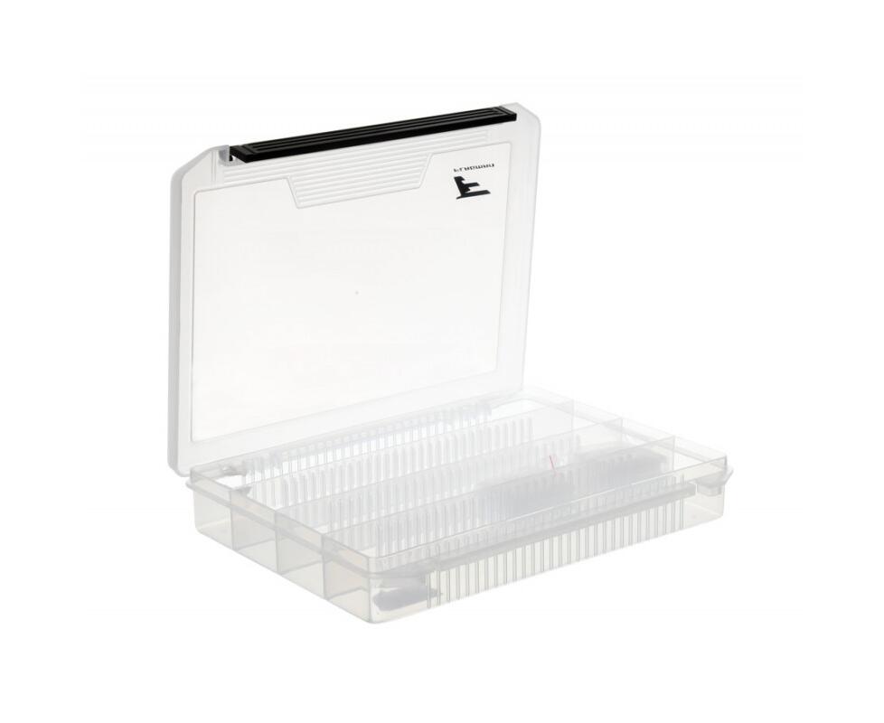Flagman Tackle Box #4 – прозрачная рыболовная коробка, которая изготовлена из полипропилена. Устойчива к воздействию материала мягких пластиковых приманок. Коробка Tackle Box #4 оборудована четырьмя широкими отсеками для хранения приманок. Кроме того, каждый отсек делится на несколько ячеек с помощью съемных перегородок. Такой поход позволяет произвольно выбирать размер и количество ячеек, формируя внутреннее пространство коробки под конкретные задачи. Крышка крепиться с помощью шарнирного соединения и закрывается на замок-защелку. Размеры Tackle Box #4: 245х190х40 мм.