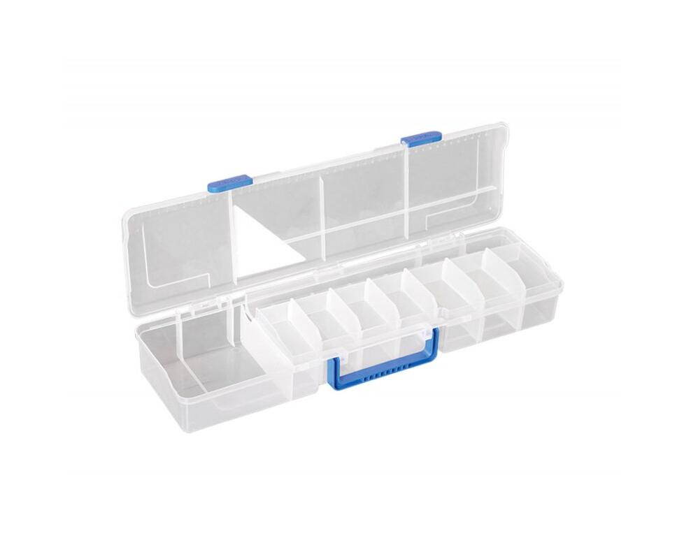 Коробка увеличенной длины, оборудованная полочкой-вставкой. Удобна для хранения фидерных и поплавочных аксессуаров, а также элементов оснасток.