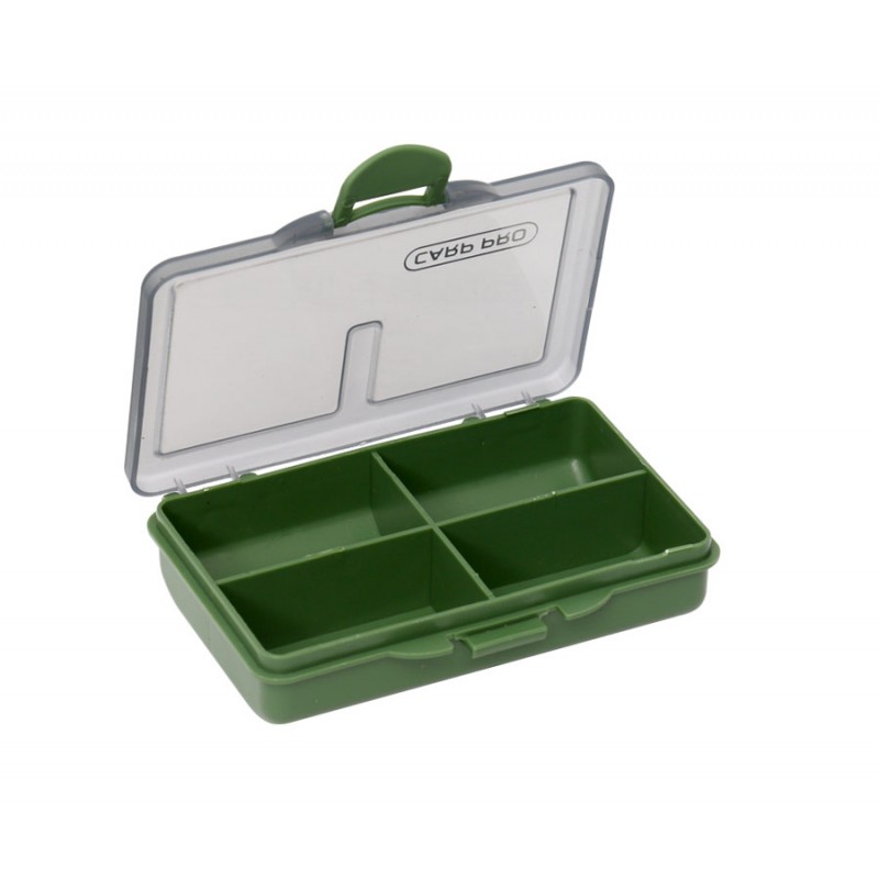 Небольшая карповая коробка Carp Pro для аксессуаров с четырьмя отсеками рассчитана на любителей карпфишинга. Эта компактная и удобная коробка для рыболовной «мелочевки» изготовлена из ударопрочного пластика, стойкого к ультрафиолету и к перепадам температур. Верхняя крышка выполнена из полупрозрачного пластика и позволяет, не открывая коробку, визуально определить место укладки нужного аксессуара или оценить их количество. Внутренние габариты 95x45x20мм.