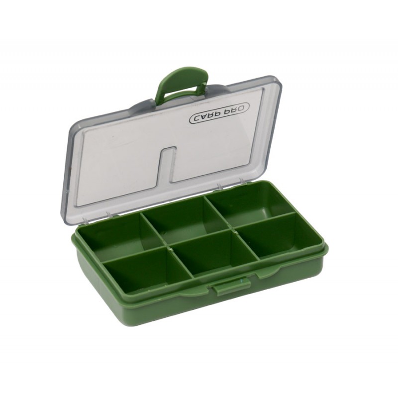 Небольшая карповая коробка Carp Pro для аксессуаров с четырьмя отсеками рассчитана на любителей карпфишинга. Эта компактная и удобная коробка для рыболовной «мелочевки» изготовлена из ударопрочного пластика, стойкого к ультрафиолету и к перепадам температур. Верхняя крышка выполнена из полупрозрачного пластика и позволяет, не открывая коробку, визуально определить место укладки нужного аксессуара или оценить их количество. Внутренние габариты 95x45x20 мм.