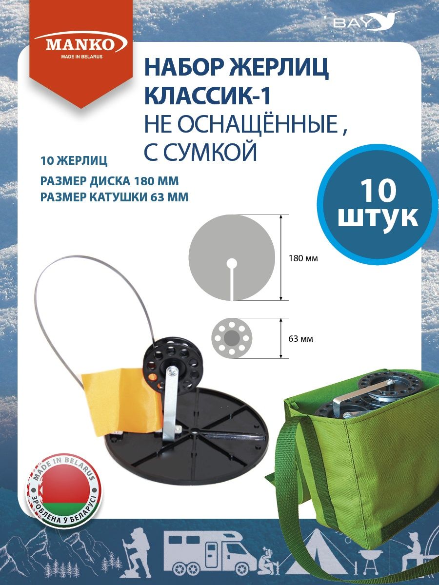 Набор жерлиц MANKO Классик-1 не оснащенные 10 штук в сумке зимние