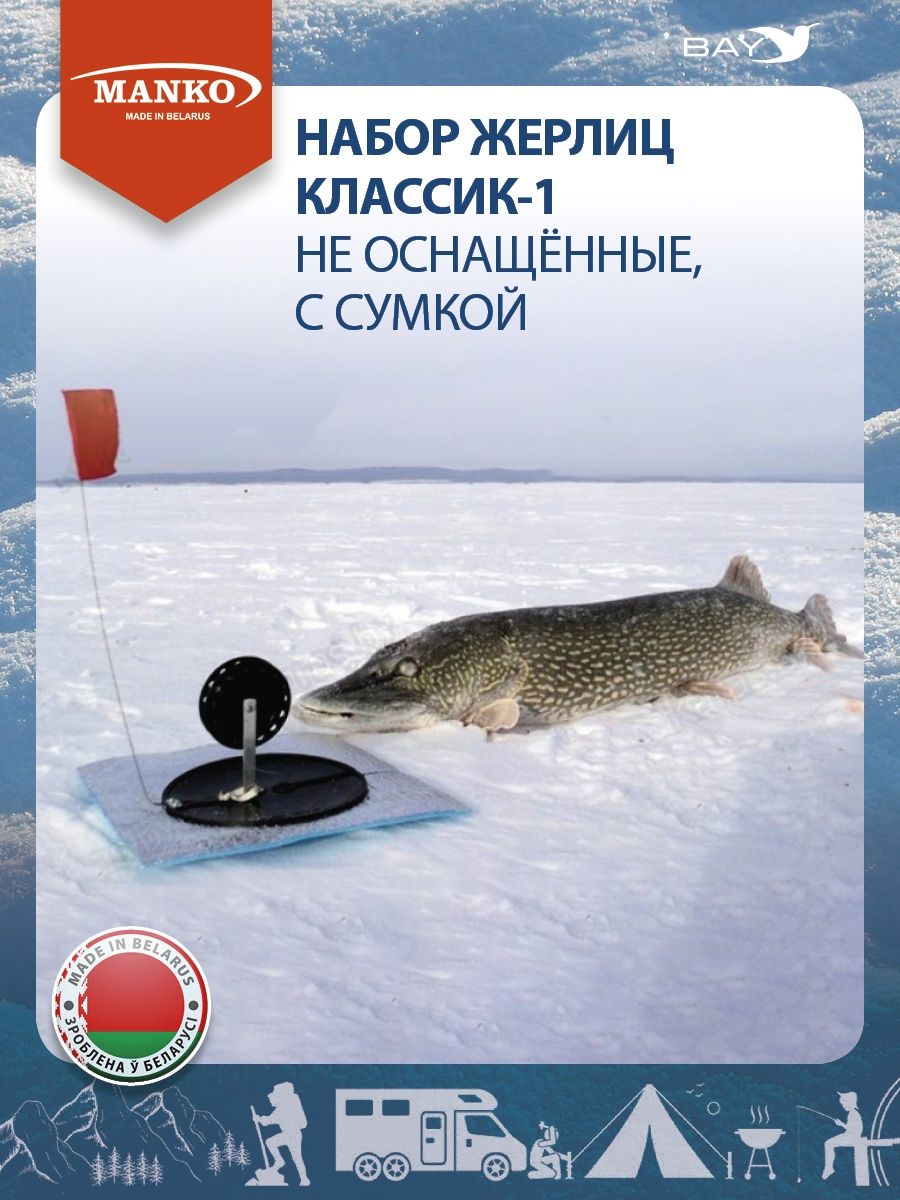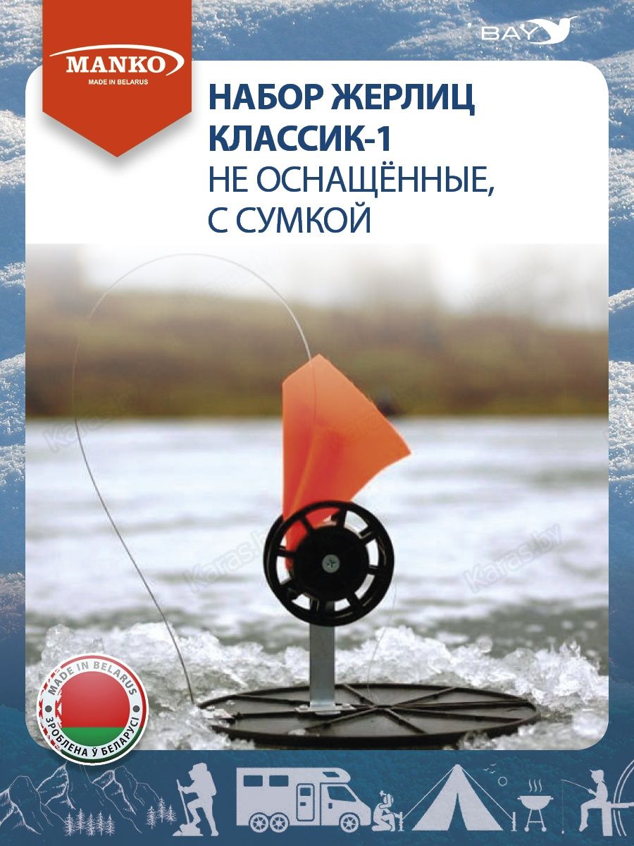 Жерлицы зимние от белорусcкого производителя MANKO. Имеется тормоз на катушке. Флажок очень яркого цвета, проклеен и прошит. Изготовлены из морозостойкого пластика! Жерлицы зимние удивят вас своим качеством и долговечностью. Легко собираются в рабочее положение и так же легко разбираются. Конструкция данной жерлицы не оснащенной позволит вам надёжно закрепить её и избежать холостых поклёвок. В комплект входит 5 жерлиц или 10 жерлиц в сумке! Размер диска 180мм, размер катушки 63 мм. Жерлицы отличаются высоким качеством как самих материалов, так и точной подгонкой всех элементов! Жерлица зимняя для подледной ловли рыбы состоит из основания, стойка с катушкой и флажка-сигнализатора с фиксатором крепления. Можно ловить на блесну, балансир и на живую приманку. Яркая расцветка флажка помогает быстро увидеть сигнальную поклевку жерлиц в зимних условиях. При поклевке леска натягивается и проворачивает катушку, флажок выпрямляется, и сигнализируя о поклевке. Жерлицы / жерлицы оснащённые / жерлицы зимние / зимняя рыбалка / для рыбалки / флажок для зимней рыбалки. Отличный подарок другу рыбаку, брату, папе, мужу. Подарок на Новы год!