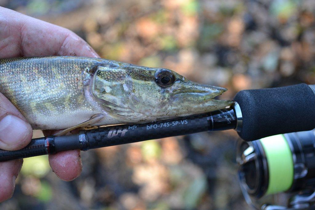 Если говорить о работе спиннингового удилища с микроколебалками и колебалками размером поболее, то снасть отлично посылает на необходимое расстояние и анимирует блесны весом от 3 граммов и вплоть до верхнего предела тестового диапазона.