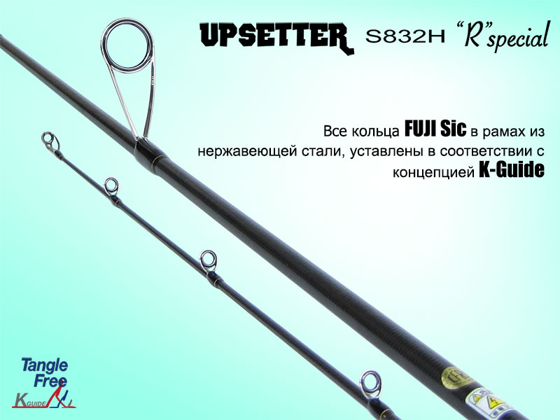 Серия UP SETTER в семействе спиннингов Tict, была особо оценена Российскими рыболовами. Модели класса «MH» и «H», отличаются высоким сдерживающим ресурсом, фастовым строем и чувствительностью. Модель TICT Upsetter S832H стала оснащаться кольцами FUJI, с новыми вставками формата ”S” 2017 год, (маркировка ”Sis” в каталоге FUJI).. Вставки нового формата ”Sis” стали легче и внутренний их диаметр увеличился.