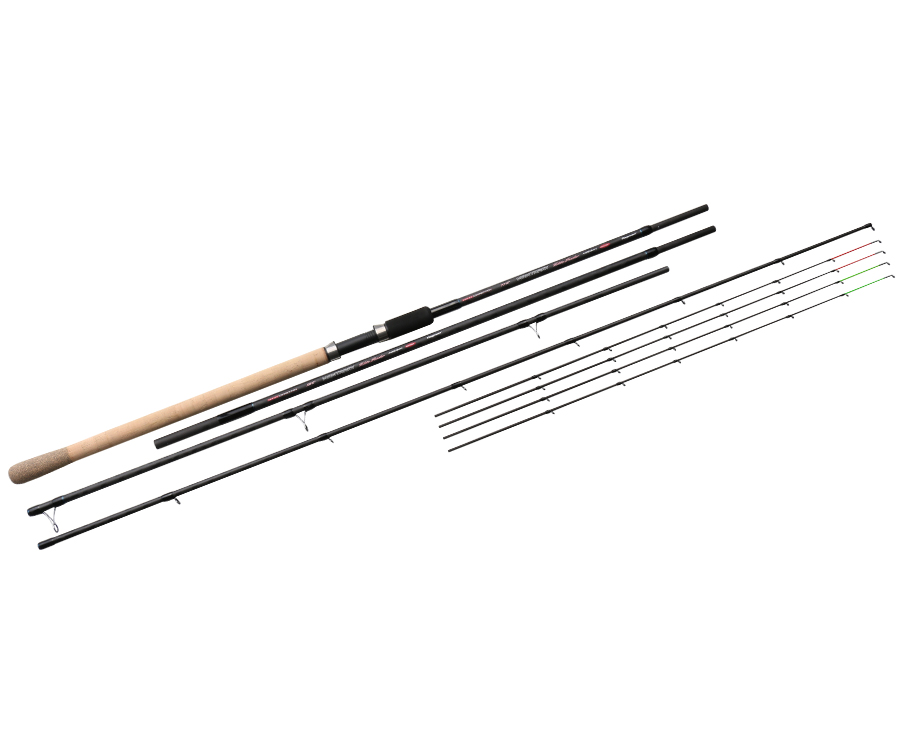 Универсальное фидерное удилище, которое не только позволяет рыбачить в самых различных условиях, но и дает возможность быстро приспосабливаться к изменяющейся обстановке. Это достигается как выдающимися характеристиками снасти, так и изменяемой длиной. Причем, производить изменения длины можно прямо в процессе ловли, не демонтируя оснастку и не снимая катушку. Строй удилища – быстрый прогрессивный. Комфортная дистанция заброса составляет 40–70 м, а оптимальный вес кормушек – 20–60 г. Обладает высочайшей чувствительностью, совершенно не утомляет руку и превращает рыбалку в настоящее удовольствие.В комплекте идут 4 дополнительных кончика из карбона и стекла разной жесткости: 1C, 1,5G, 2C, 3C oz