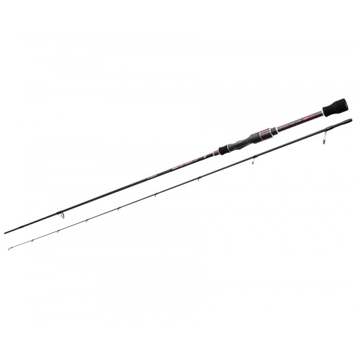 Новая серия спиннинговых удилищ Flagman, которая существенно подняла планку качества и характеристик в своем ценовом диапазоне. Бланки этих удилищ имеют значительную конусность, и строй, заявленный как быстрый, здесь, скорее, ближе к сверхбыстрому. Иными словами, удилища имеют гибкую, чувствительную вершину и мощную комлевую часть. Вершина представляет собой часть бланка – это не монолитная вклейка. Благодаря такой концепции удилища отличает широкий реальный тестовый диапазон: они хорошо чувствуют проводку легких приманок и способны забрасывать довольно тяжелые. Это отличные снасти для джиговой ловли, сохраняющие высокую чувствительность в ветреную погоду и при ловле на участках с заиленным дном. Они отлично подходят для ловли на относительно крупные приманки с легкой огрузкой, поскольку способны их далеко забрасывать и при этом хорошо чувствовать проводку. Четыре кольца, ближайшие к катушке, образуют короткий конус. Остальные имеют такой же маленький размер и очень короткие опоры, как и четвертое. Такая концепция разгружает бланк, снижает его инерцию, повышает чувствительность. «Скелетный» пластиковый катушкодержатель с многочисленными элементами из карбона не только придает снасти современный вид, но и повышает тактильную чувствительность. Разнесенная рукоять в духе минимализма делает комфортным выполнение сложных неравномерных проводок. Эту снасть можно использовать как универсальную. Единственный момент – твичить получится только некрупные воблеры, но если при проводке держать бланк под более тупым углом к леске, можно обойти и это ограничение.