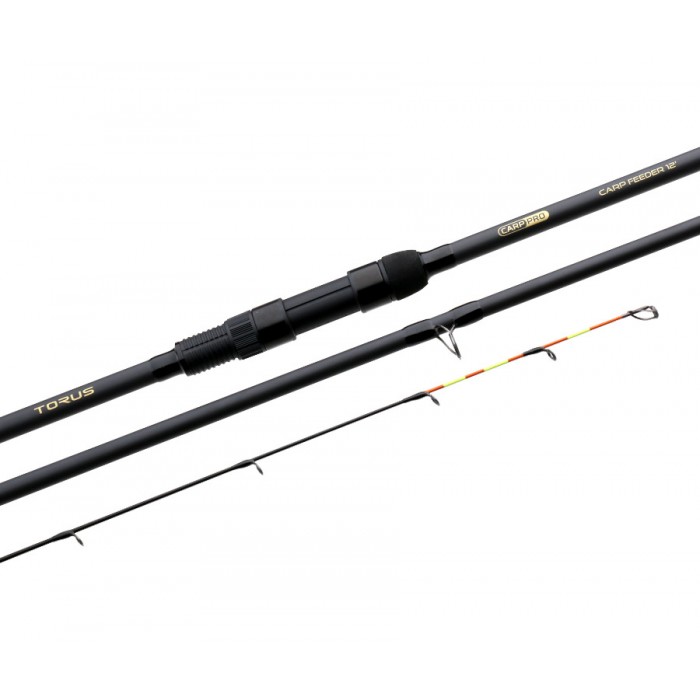 Carp Pro Torus Carp Feeder — серия удилищ, предназначенных для фидерной ловли карпа. Бланки среднего строя (Moderate Fast) из карбона FWC 5.0 отличаются солидным запасом прочности, что будет в полной мере востребовано при вываживании крупного экземпляра. При этом они характеризуются небольшим, как для своей мощности, диаметром. Модели оснащены разнесенными рукоятями из синтетического материала.Пропускные кольца и тюльпан со вставками из твердой керамики имеют рамы противозахлестной конструкции. Удилища комплектуются тремя карбоновыми вершинами номиналом 2, 3, 5 oz. Яркие, флуоресцентные цвета — желтый и оранжевый — делают вершины хорошо заметными на любом фоне и при любой освещенности, что помогает лучше отслеживать поклевки. Кроме своего прямого назначения, удилища могут использоваться для ловли белой рыбы на реках — там, где необходимы тяжелые кормушки.