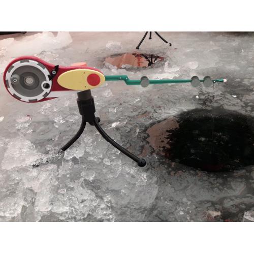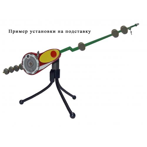 ✔При поклевке рыбы на кончике шестика загорается светодиод, раздается звуковой сигнал и удочка, в зависимости от поклевки, начинает двигаться вниз или вверх. При подсечке, магнитные силы разрываются, удочка остается в руках рыболова, а стойка-тренога на льду.