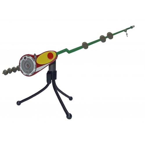 ✔Электронный балансир-2 представляет собой зимнюю снасть, состоящую из самой удочки со встроенным светозвуковым сигнализатором поклевки и треноги, в которую специальным образом вмонтирована ось с магнитом, на который устанавливается снаряженная удочка. В корпус удочки вмонтирован магнит, и, таким образом, удочка удерживается на оси между двух магнитов.