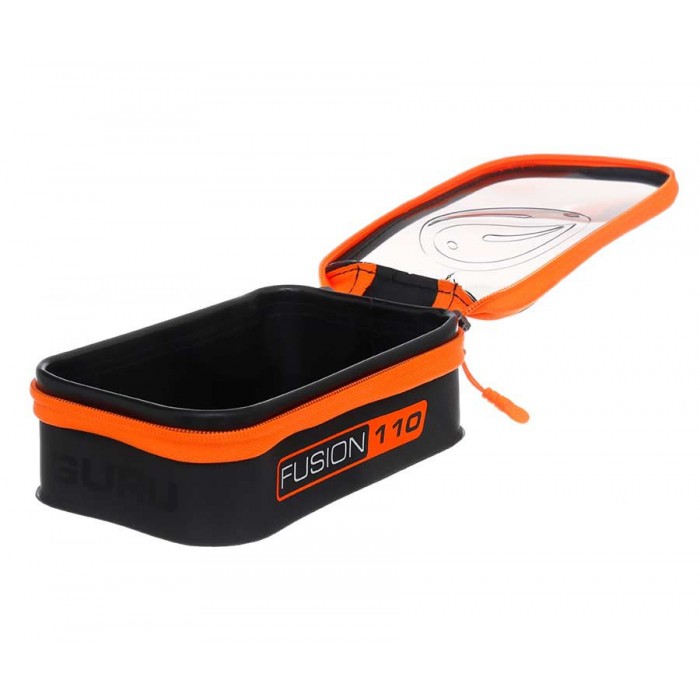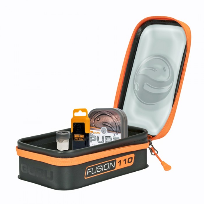 Guru Fusion — серия специализированных, водостойких сумок и боксов от британского производителя, разработанная для хранения фидерной оснастки и других аксессуаров. Сумки изготавливаются из композиционного полимерного материала EVA толщиной 0,8 мм, который не пропускает влагу и легко моется. Сумка закрывается на водостойкую молнию. Верхняя часть сумки прозрачная и позволяет видеть ее содержимое.
