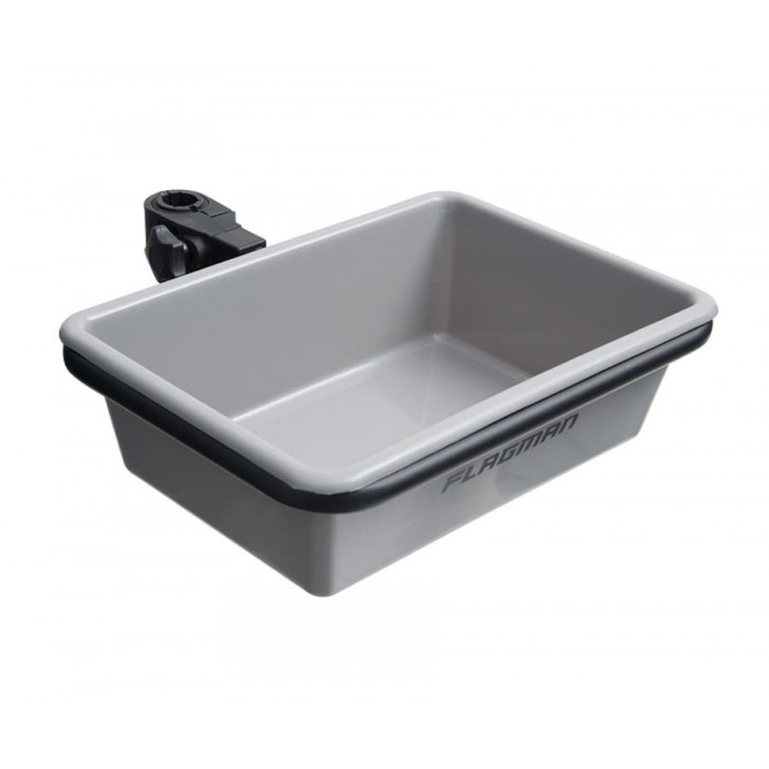 Прямоугольная пластиковая емкость, предназначенная для хранения небольшой порции прикормки в процессе ловли. Оборудована металлическим ободом с креплением, которое, благодаря специальным вставкам (входят в комплект), может фиксироваться на ноги платформы диаметром 25 и 30 мм. Глубина: - 9 см Материал: - пластик Объем: - 5 л Размер: - 33.5x26.5 см