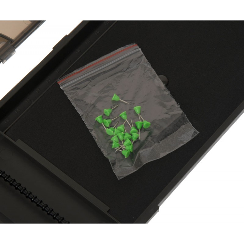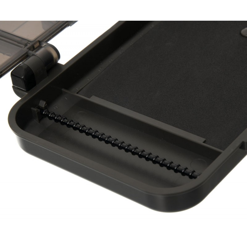Коробка карповая Carp Pro Mini Tackle & Rig Box – двухсторонний пластиковый кейс-органайзер, созданный специально для хранения и транспортировки готовых монтажей, комплектующих оснасток, терминальных снастей и аксессуаров, используемых в карповой ловле. Набор состоит из кейса, в верхней части которого расположено 21 закрывающееся прозрачными крышками отделение для хранения рыболовной мелочёвки и аксессуаров. В нижней части расположена поводочница, позволяющая хранить готовые поводки разной длины. Коробка-органайзер Carp Pro Mini Tackle & Rig Box изготовлена из прочного качественного ABS пластика, который не теряет свои свойства со временем, и оборудована мощными защёлками и надёжными петлями. Размеры: 28,5х20,5х7 см. Комплектация: Tacklebox + поводочница + иголки для крепления поводков 20 шт. С этой моделью вы можете использовать адаптер с быстросъёмным коннектором Carp Pro Base Clamp With Quick Release Connector CPBCL, предназначенный для крепления коробки к стойке или род-поду. Адаптер фиксируется в задней части коробки и приобретается отдельно.