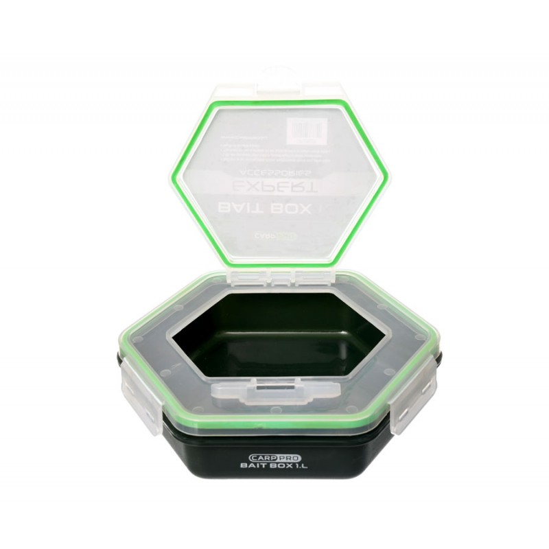 Коробки Carp Pro Bait Box – удобные и функциональные боксы, предназначенные для герметичного хранения стик- и метод-миксов, готовых стиков, а также приманок для ловли карпа. Carp Pro Bait Box изготовлены из прочного пластика. Основная крышка каждой модели Carp Pro Bait Box оборудована дополнительной крышкой меньшего размера – для быстрого доступа к содержимому. Крышки оснащены резиновыми прокладками, обеспечивающими герметичность изделия и предотвращающими проникновение воды, пыли и посторонних запахов. В серии доступны модели ёмкостью 1, 1,5 и 2 литра.